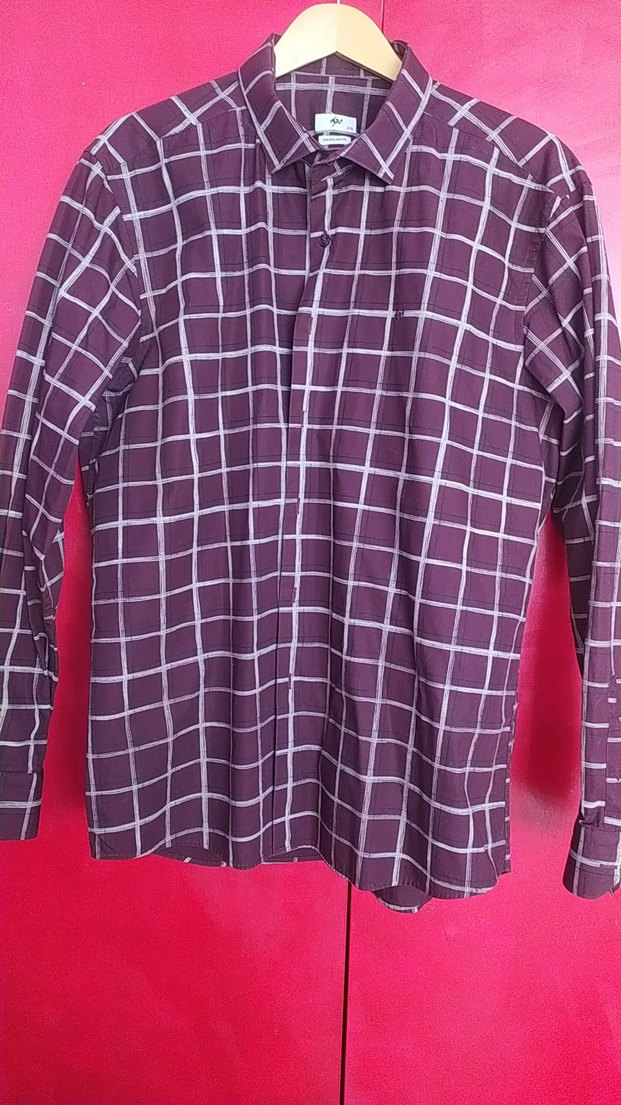 Bordo kareli desene sahip, uzun kollu ve yakalı erkek gömleği. Düğmeli ön kısmı ve regular fit kesimiyle günlük ve iş stiline uygundur. Kumaşı kalındır ve kış mevsimi için uygundur. Hiç kullanılmamıştır. Markası İgs.