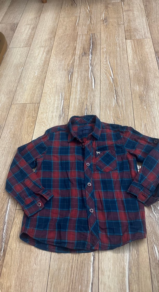 Bordo ve koyu renk kareli desenli, düğmeli, yakalı ve uzun kollu erkek gömleği. Rahat kesim ve yumuşak, sıcak tutan kumaştan üretilmiştir.