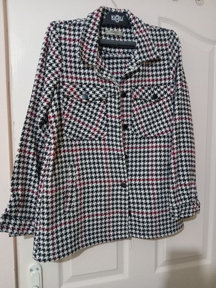 Bordo renkli kadın gömlek, düğmeli ve uzun kolludur. Notlu yaka ve normal kesim midi boyda. Sentetik kumaştan, günlük ve sokak stili için uygun desenlidir. Oduncu gömleğidir. hiç kullanmadım bayağı kalındır, Yeni hiç kullanilmamisitr. ama etiketi mevcut degil.ölçüleri için yazınız