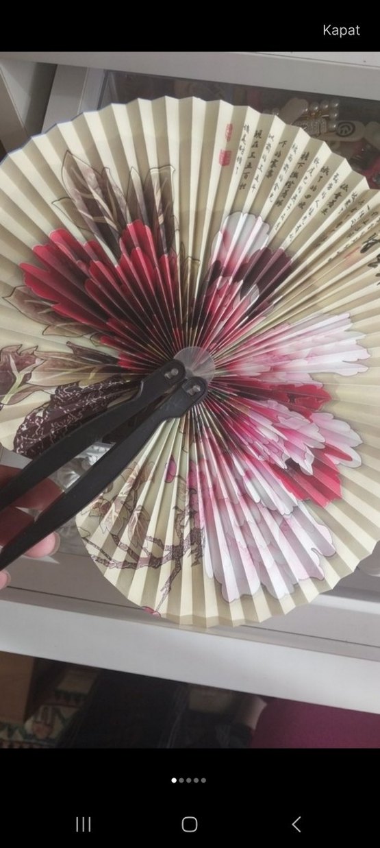 Bordo çiçek desenli, koyu saplı katlanabilir yelpaze, zarafet ve geleneksel dokunuş sunar. Kağıt gibi kumaştan degil.3 model ver ilan açtırabilirsiniz.