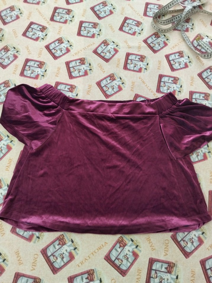 Bordo renkli, kayık yaka ve kısa kollu, bol kesimli kadın bluz. Yumuşak sentetik kumaştan, drapeli tasarıma ve normal midi boyuta sahip. Romantik buluşmalar için uygun.