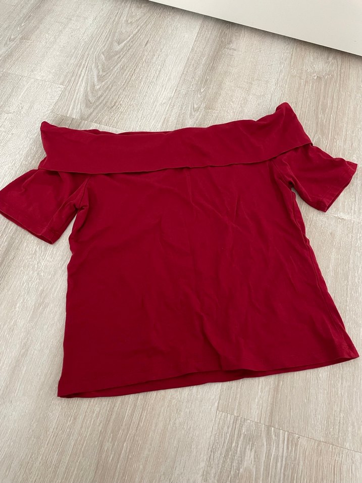 Bordo Kayık Yaka Kısa Kollu Kadın Bluz