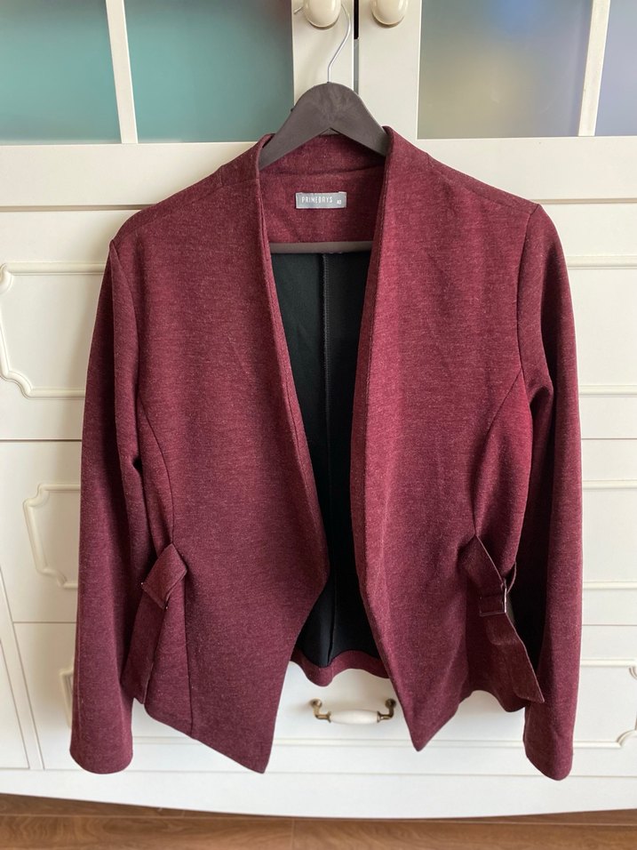 Bordo renkli kadın blazer ceket, kesik yakalı ve kemerli klasik kesime sahiptir. Uzun kollu ve midi boyda, yumuşak ve sıcak kumaştan üretilmiştir. Ofis için uygun, desen içermeyen çağdaş tarzda bir üründür.