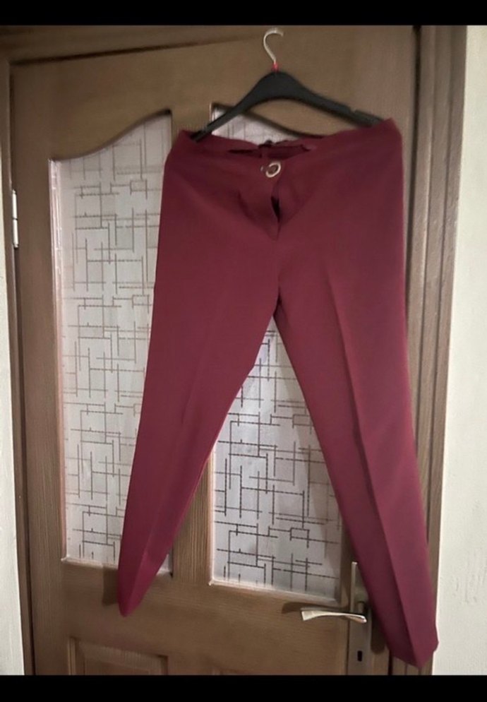 Bordo renkli, kemerli, midi boy kadın kumaş pantolon. Ofis ve sokak tarzına uygun, trend görünümlü, rahat kesim ve sentetik kumaştan üretilmiştir. 38 bedene uyumlu esnk