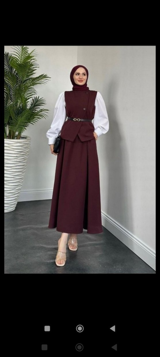 Bordo Kemerli Uzun Kadın Elbise