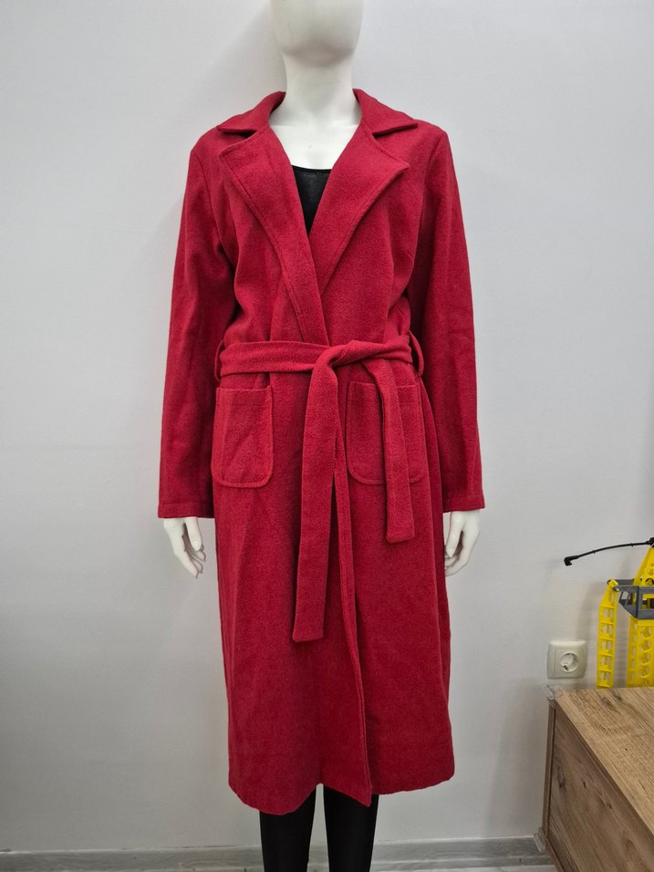 Bordo renkli, uzun, kemerli ve yakalı bu kaban, yumuşak ve sıcak kumaştan üretilmiştir. Uzun kollu ve rahat kesimlidir.