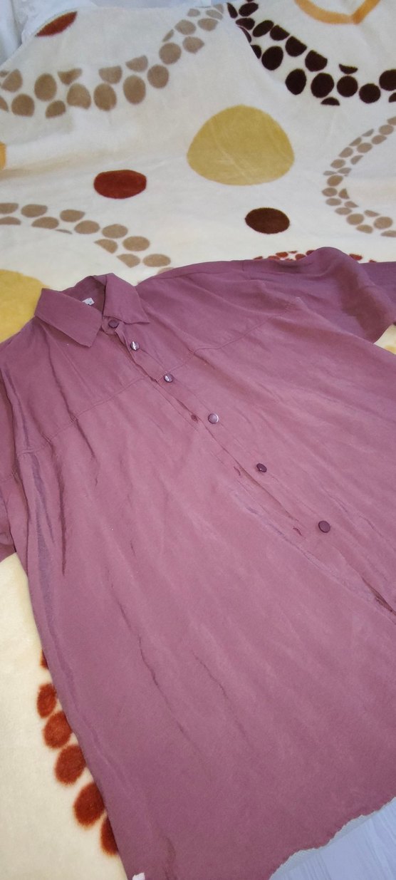 bir kez giyildi m beden ama bol bi gömlek L XL giyerken giydim. hafif parlak bi kumaşı var çok tarz
