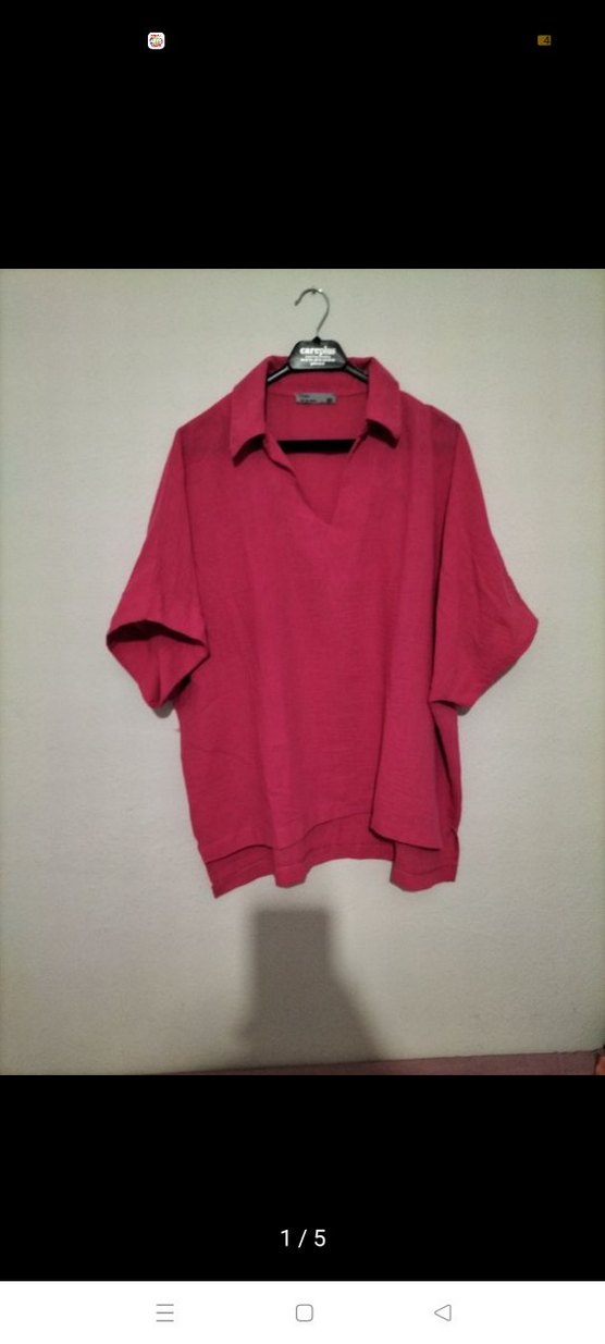 Bordo renkli keten kumaştan, kısa kollu ve salaş kesime sahip, yakalı normal boy midi gömlek. Günlük rahat kullanıma uygun sade tasarım.