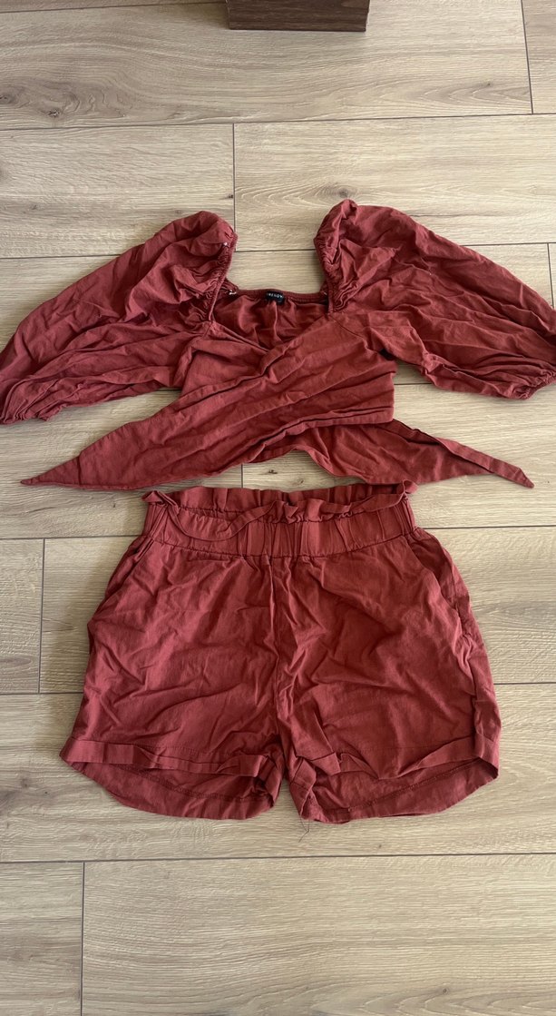 Bordo keten mini tulum, bol kesim, kemerli, askılı kolsuz, bohem tarzda, açık hava kullanımı için uygundur.