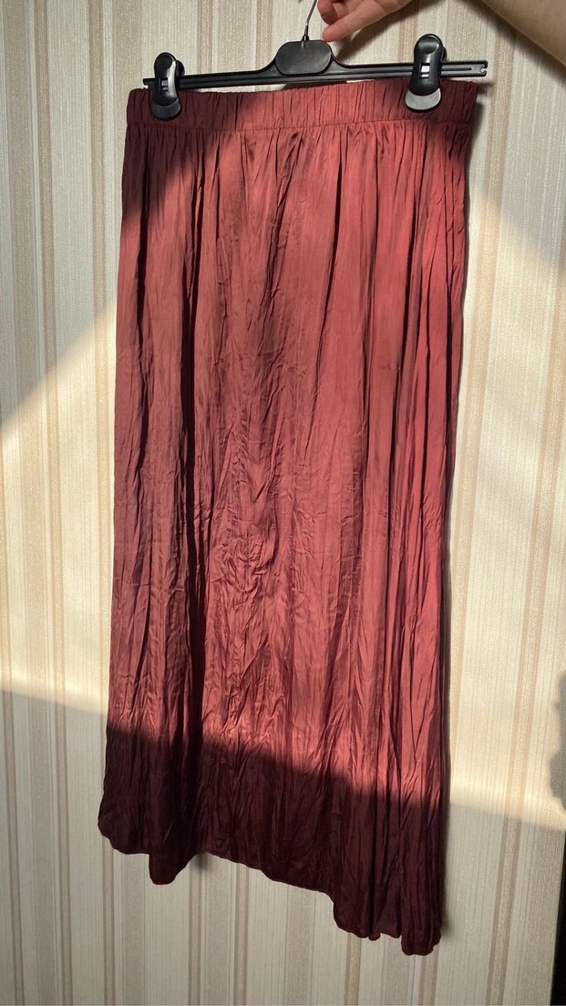 Bordo Keten Salaş Uzun Etek