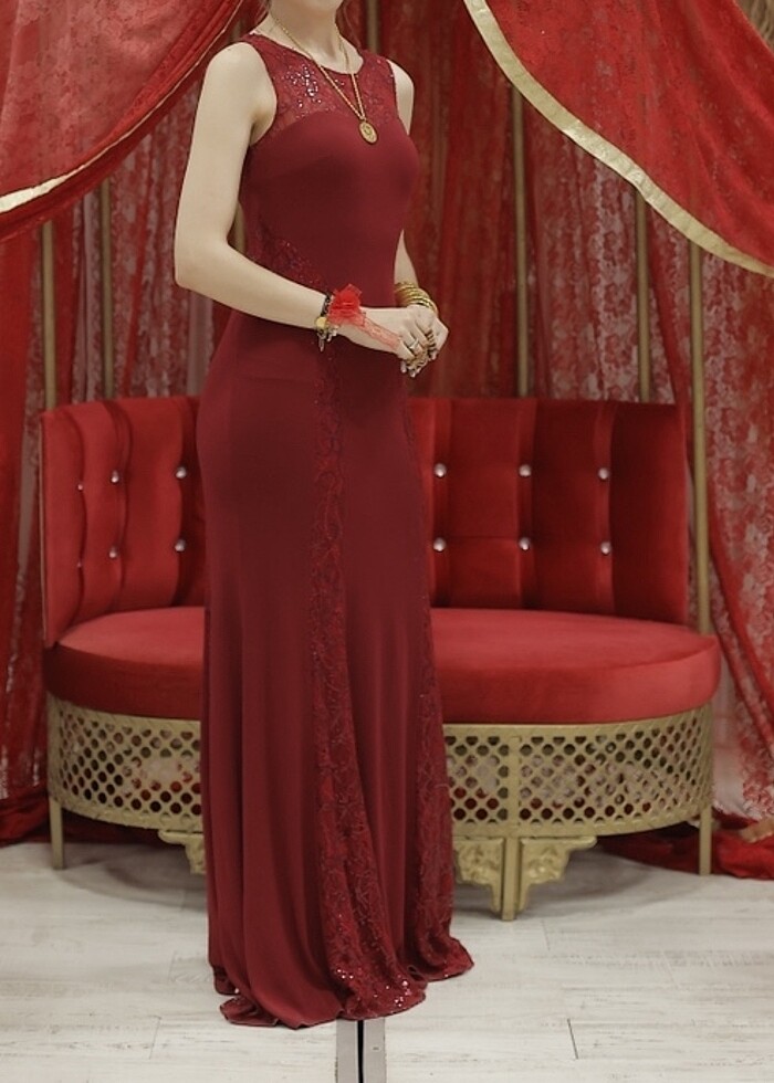 Kınamda giydim, boyu uzun sırt kısmı yarıya kadar tül. Boyum 1.78