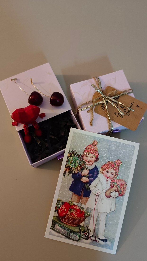 Kiraz küpe Kalp obje ve nostaljik kartpostal hediyesi ile birlikteee ve tabiki şık paketli kutusu ile... Yeni yıl hediyesi, doğum günü hediyesi veya içimden geldi hediyesi... Ya daa kendinize bir hediye