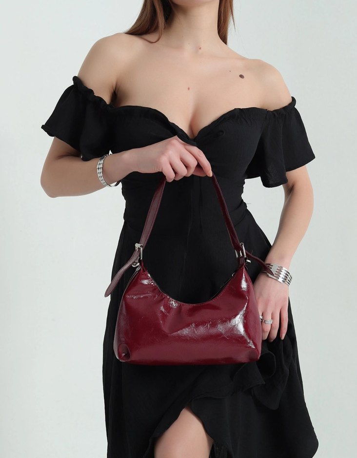 Bordo Kırışık Rugan El ve Kol Çantası