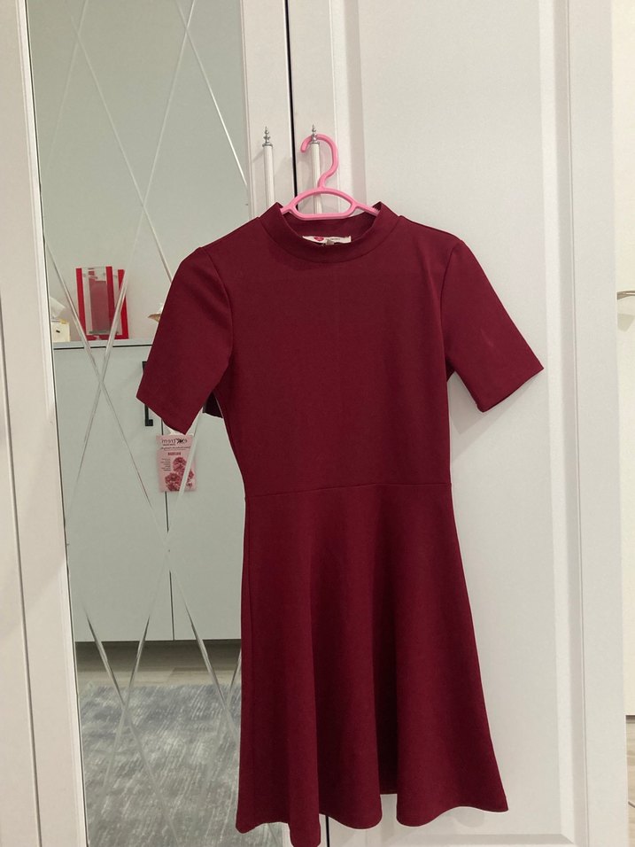 Bordo Kısa Kollu Elbise
