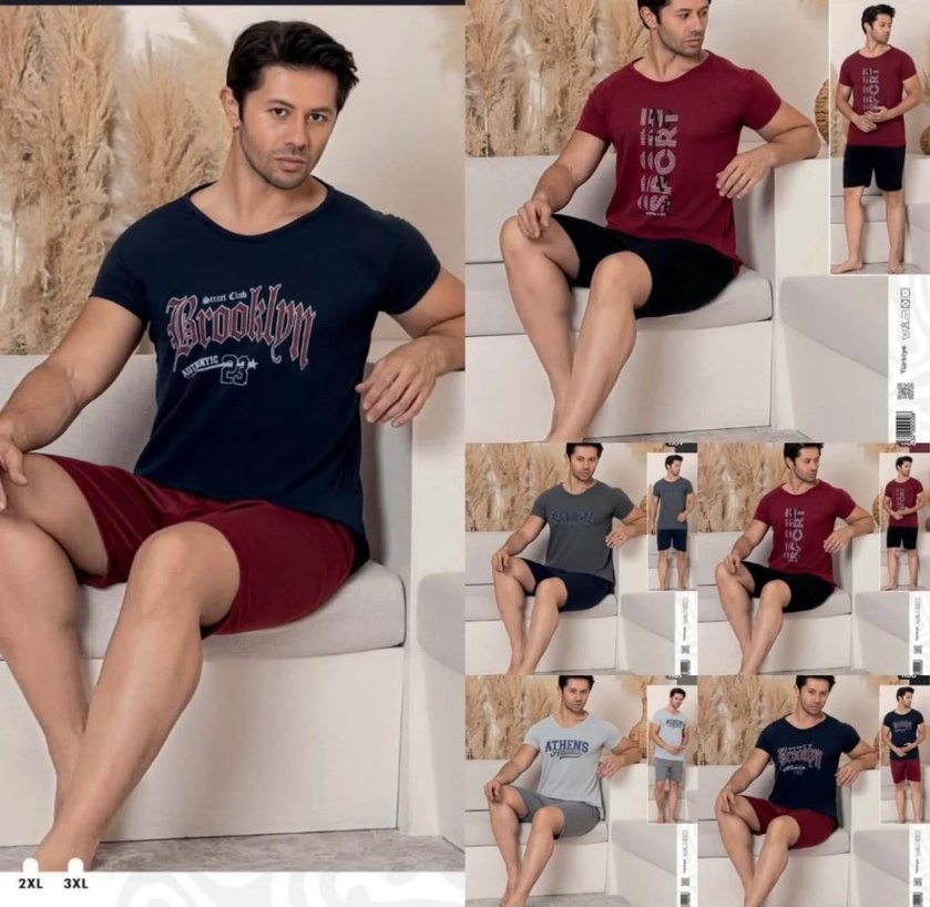 Bordo renkli, kısa kollu ve şortlu erkek pijama takımı. Bol kesim, bisiklet yaka ve baskılı deseniyle rahat ve şık bir tasarım sunar.