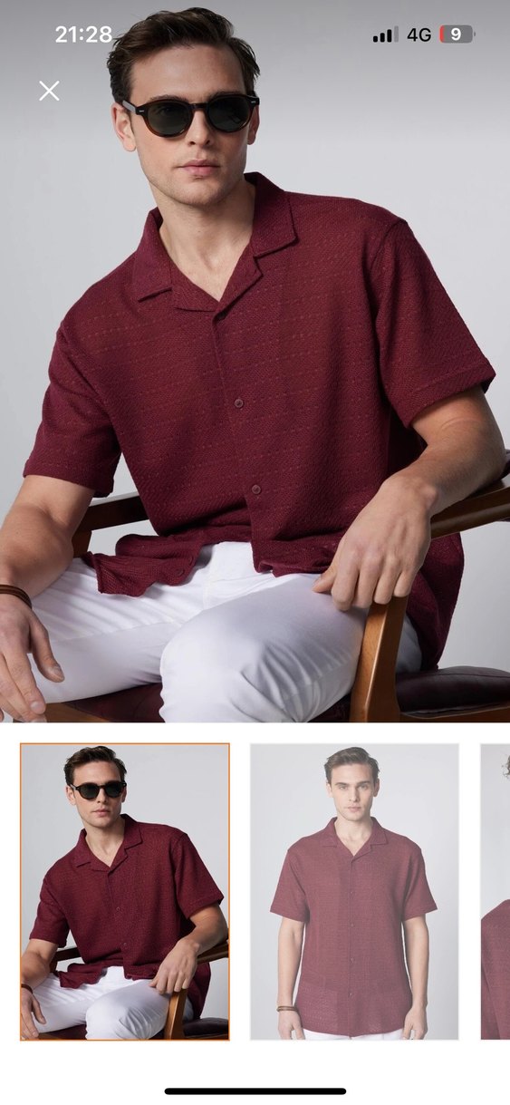 Bordo renkli, kısa kollu ve notched lapel yakalı bu erkek gömleği, düğmeli ve normal boydadır. Sentetik kumaştan yapılmıştır ve günlük kullanıma uygundur.