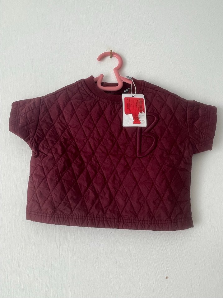 Bordo renkli kız sweatshirtü, yuvarlak yaka ve kısa kollu, bol kesimdir. Yumuşak ve sıcak örgü kumaştan, kapitone dokulu, günlük sokak tarzı için uygundur.