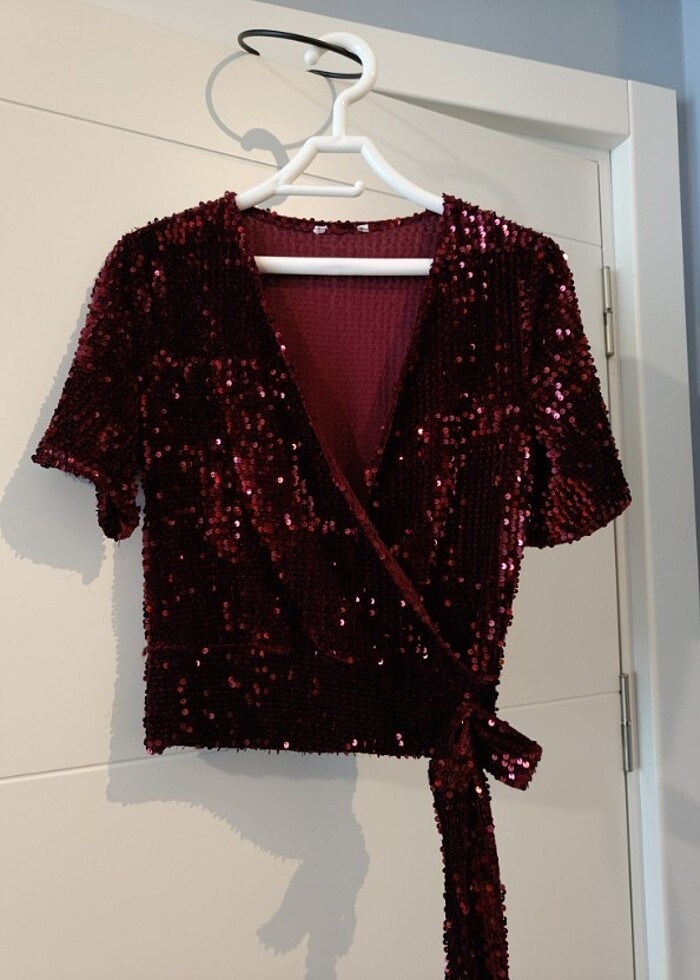 Bordo Kısa Kollu V Yaka Bluz