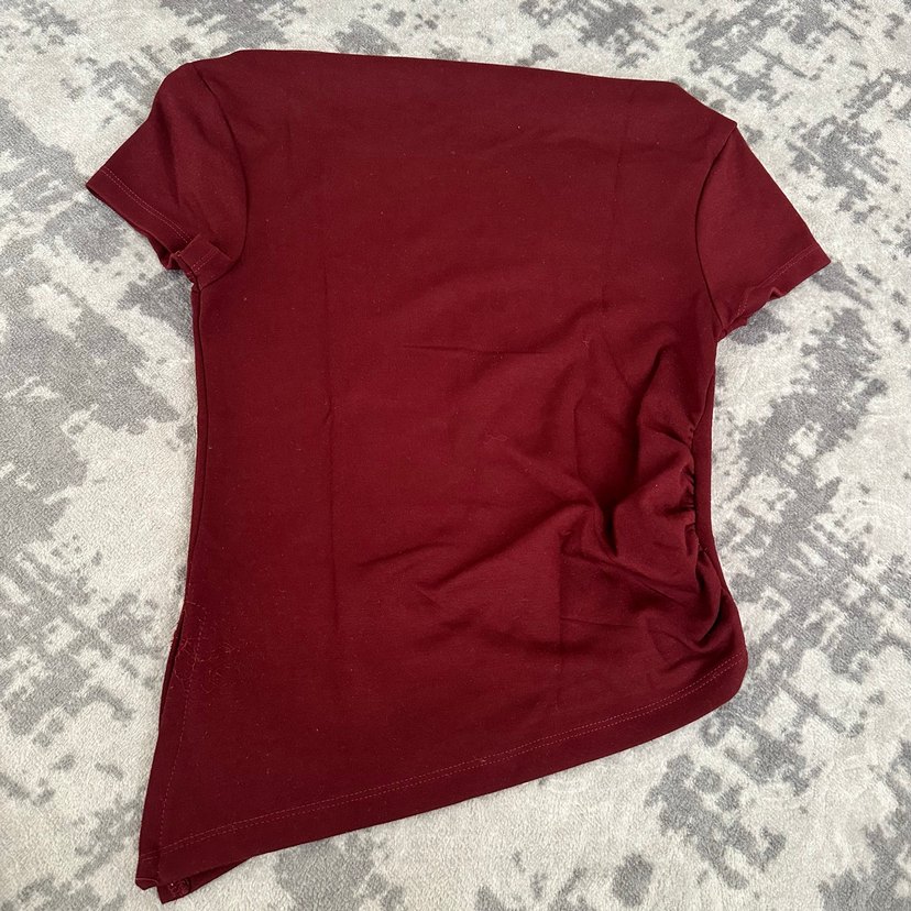 Bordo Kısa Kollu yan büzgü detay Tişört