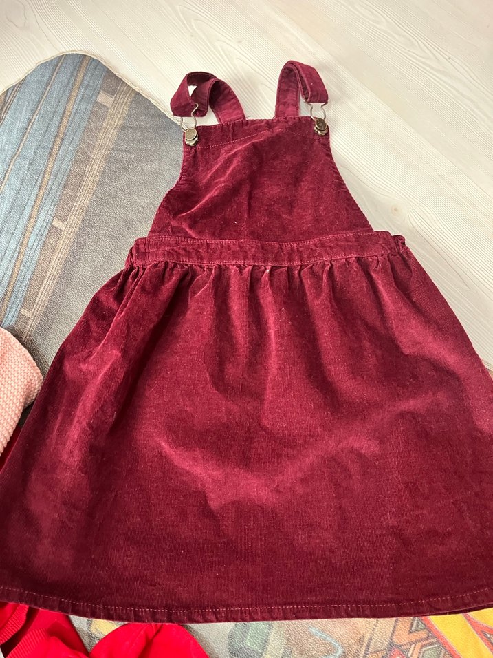 Bordo renkli, askılı ve düğmeli kız çocuk elbisesi, yumuşak kumaştan ve bohem tarzda, straplez yakalıdır.