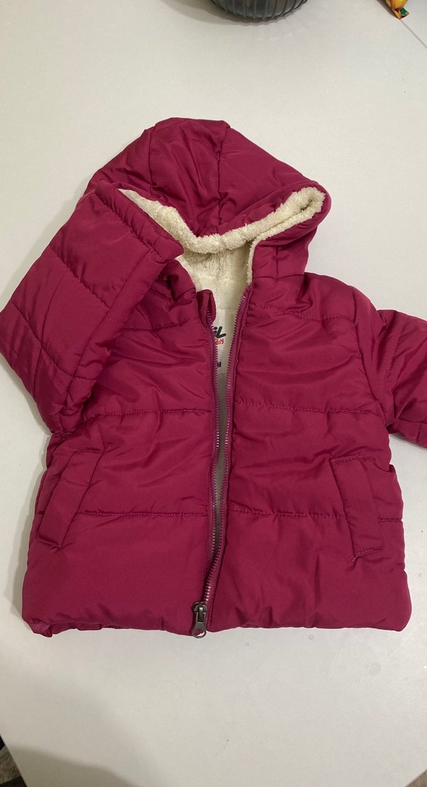Bordo renkli, parlak görünümlü, fermuarlı ve kapüşonlu kız çocuk montudur. Yumuşak ve sıcak astar ile rahatlık sağlar. Sokak tarzına uygundur. Sayılı giyinildi hiçbir yırtık leke yok.