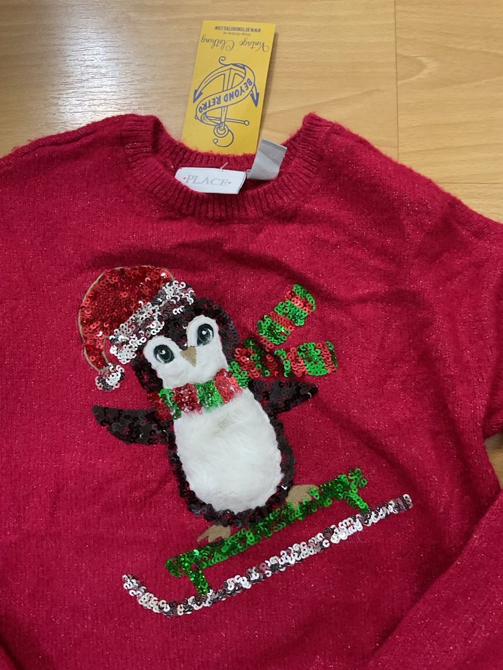 Bordo renkli, uzun kollu, yuvarlak yakalı, pul işlemeli penguen desenli triko simli kız çocuk kazağı. Yumuşak dokulu, sokak stili için uygun. İsveç’ten alınmıştır❄️