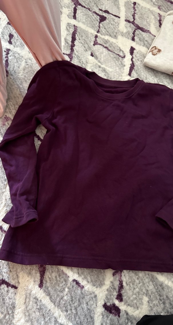 Bordo renkli, keten kumaştan yapılmış kız çocuk tişörtü. Uzun kollu ve bisiklet yaka, bol kesim rahat bir tasarıma sahip.