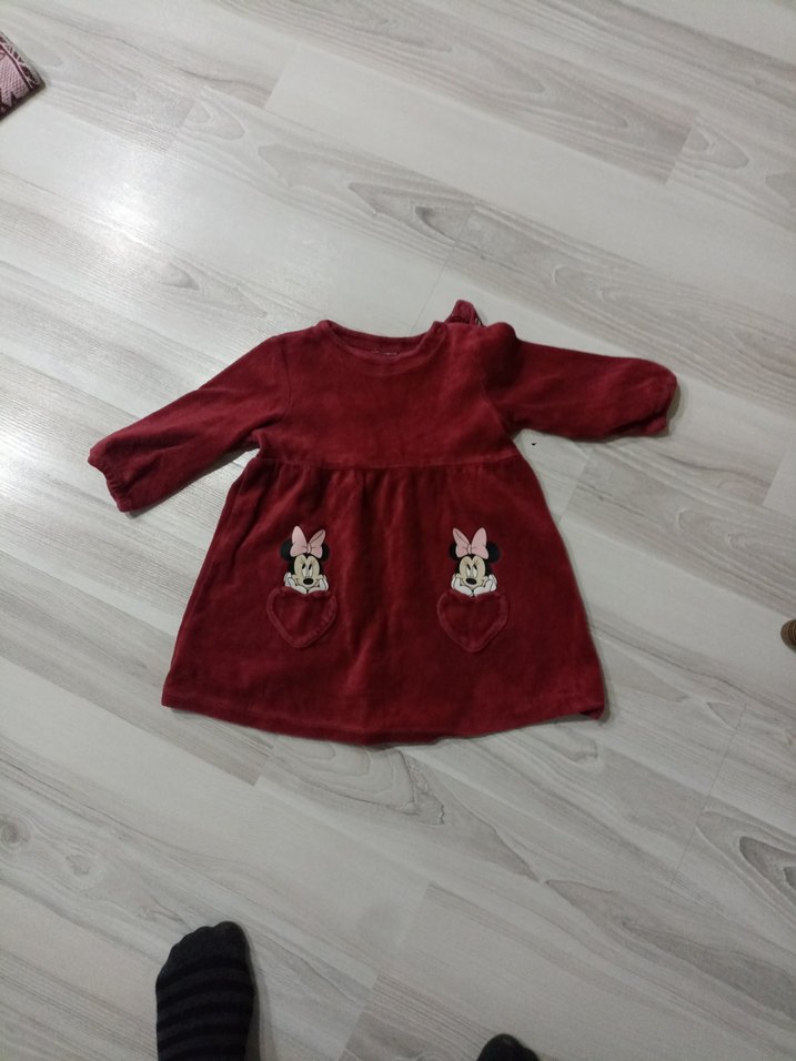 Bordo renkli, uzun kollu, bol kesim kız çocuk elbisesi. Düğmeli, yuvarlak yaka ve nakışlı renkli desenlere sahip, yumuşak ve sıcak kumaftan yapılmıştır. kadıfe 1 ve 1.5yasa uygun