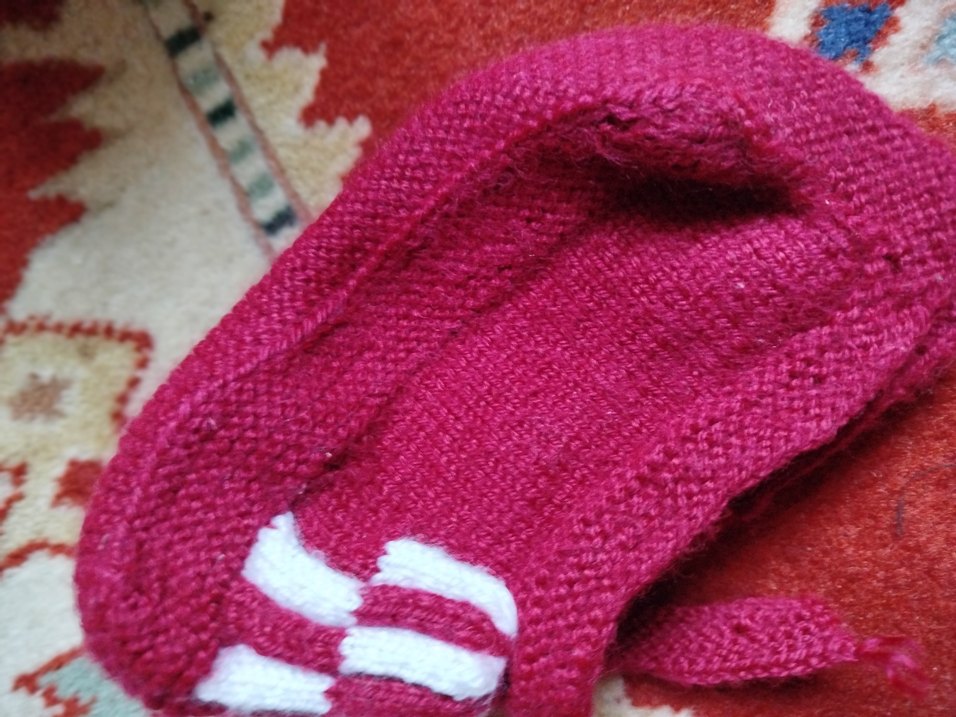 Yumuşak örme bordo kız çorabı, beyaz çizgili sade tasarıma sahip. Rahat ve sıcak tutar.