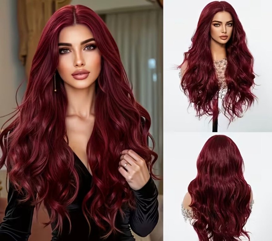 Bordo/Kızıl Parlak Dalgalı Kadın Peruk