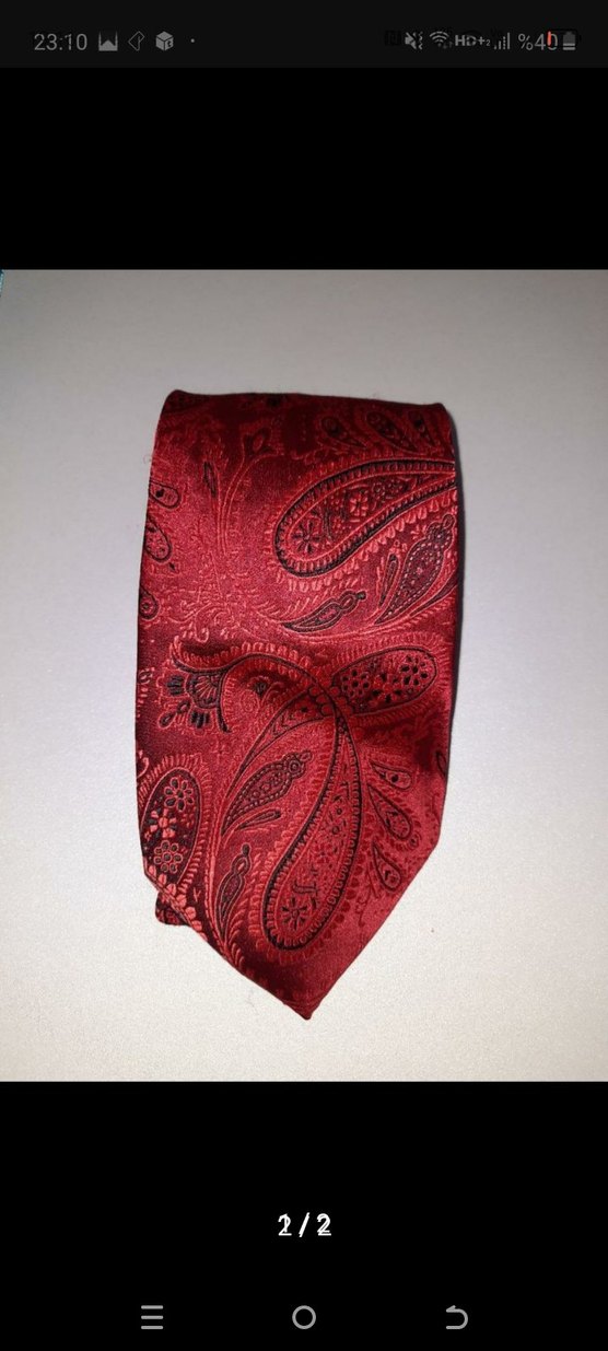 Bu erkek kravatı koyu bordo renkte, klasik paisley desenlidir ve zamansız, geleneksel bir stil sunar.
