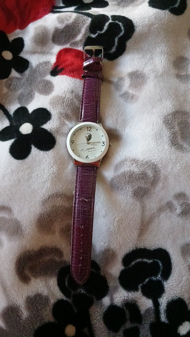 mor renkli deri kayışa sahip, tokalı klasik kadın kol saati. Gümüş tonunda yuvarlak kasa ve sade kadran ile zamansız bir tasarım sunar. ⌚ pili yok sanırım çalışmıyor ama kullanila bilir bi saat ve çok şık fiyati bu yüzden uygun tuttum alicina hayırlı olsunn