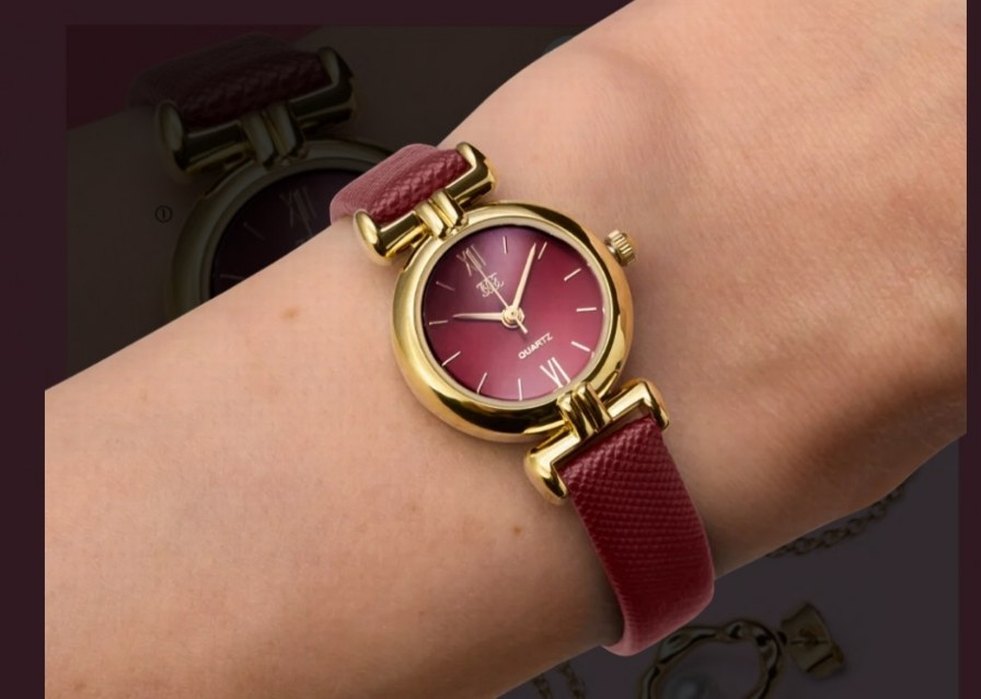 Bordo kadran ve kayışa sahip, altın renk kasa detaylı kadın kol saati. Tokalı kapama ve modern klasik tarzıyla klasik zarafeti yansıtıyor. ⌚ Oriflame güvencesi ile..