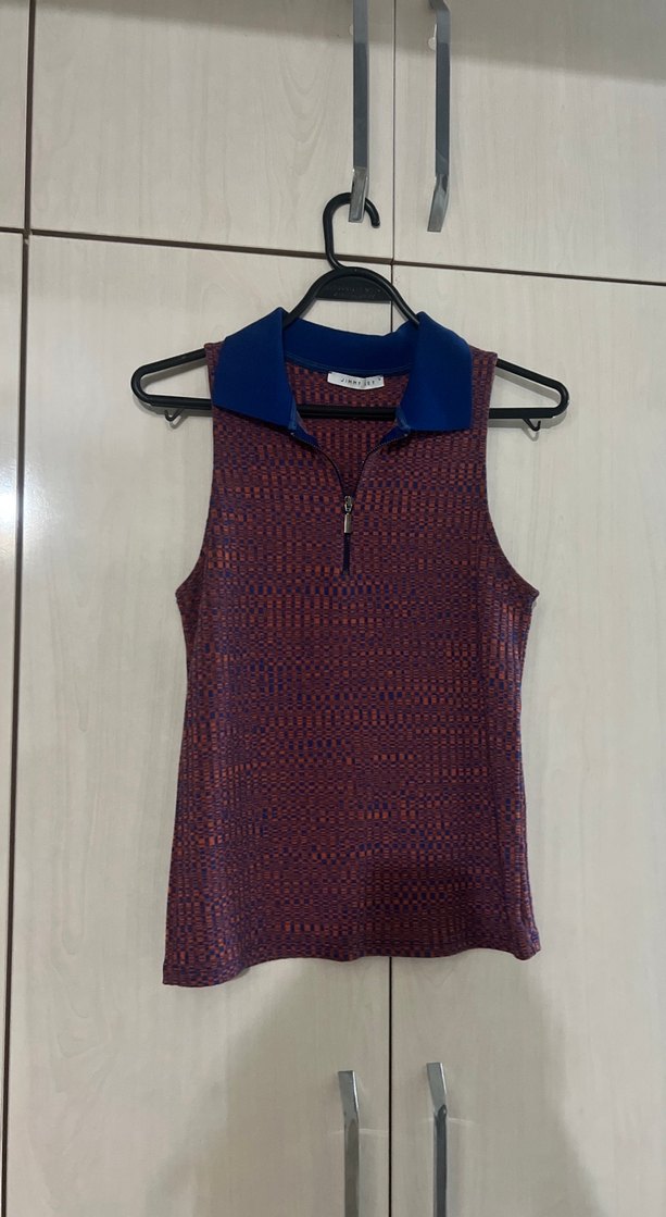 Bordo renkli, kolsuz, yüksek yakalı ve kısa boy triko atlet. Vücuda oturan kesim ve batik desenle dikkat çeker. Jimmy key. Defosuz ve sayılı giyildi tertemizzzz. Likralı. Siyah blazer ile tercih etmiştim çok şık.