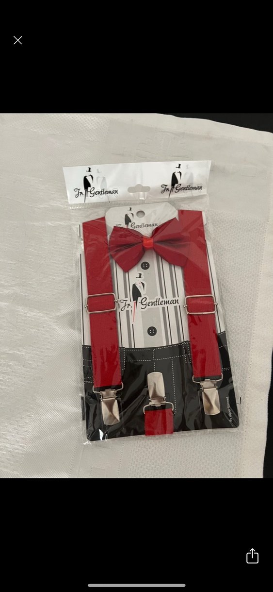 Bordo renkli, koyu desenli ve kurdele detaylı çocuk papyon ve askı seti, sentetik kumaştan üretilmiştir.