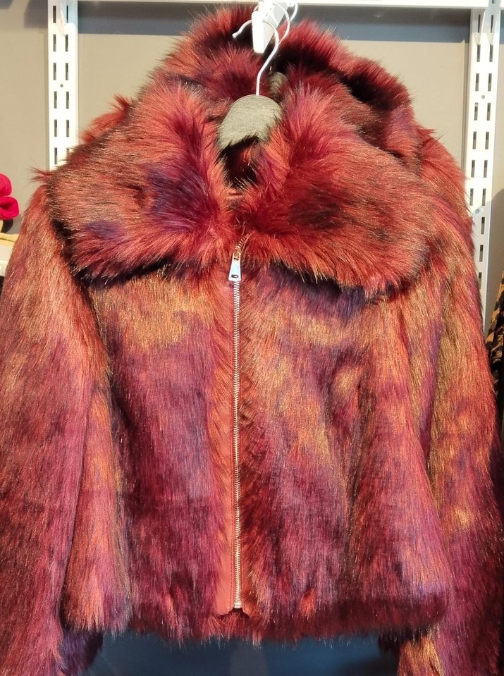 Bordo Kravat Desenli Kadın Suni Kürk Ceket
