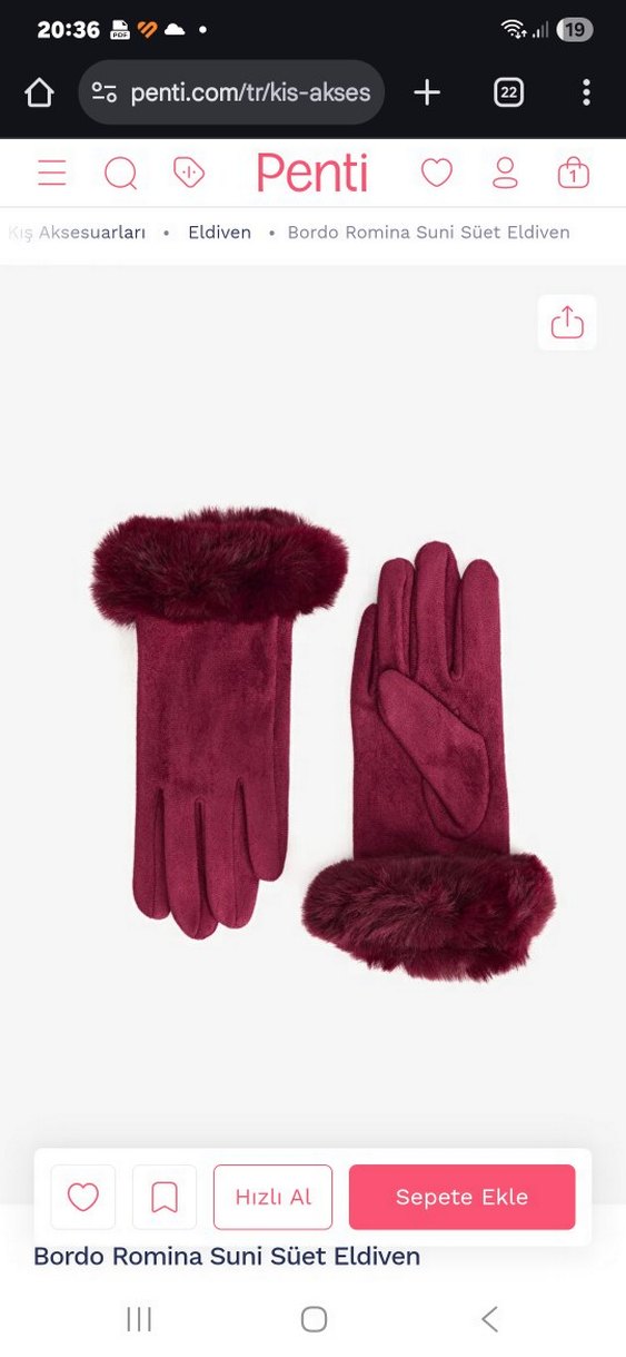 Penti Bordo renkli kadın eldivenleri, yumuşak ve sıcak kumaş ile bilek kısmında kürk detayına sahiptir.