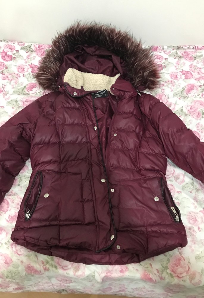 Bordo renkli, kürklü kapüşonlu, uzun kollu ve yumuşak sıcak kumaştan yapılmış, gençler için uygun, rahat ve şık bir kadın kışlık monttur. Dar kalıptır