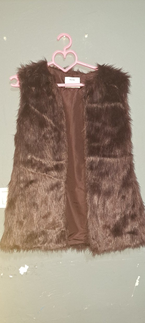 Bordo, kürklü detaylı, kolsuz, V yakalı kadın yelek. Yumuşak sentetik kumaştan, bohem ve gotik tarzda, günlük kullanıma uygun.