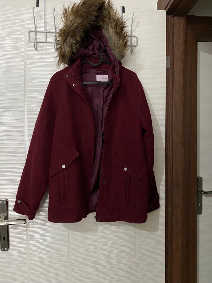Bordo renkli, kürklü kapüşonlu ve uzun kollu kadın mont. Oturmalı kesim ve normal midi boyda, yumuşak ve sıcak kumaştan üretilmiştir. Günlük kullanıma uygundur. ❄️