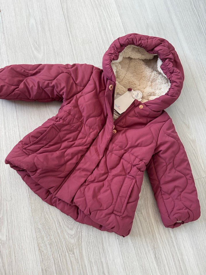 Bordo Kürklü Kız Çocuk Kapüşonlu Mont