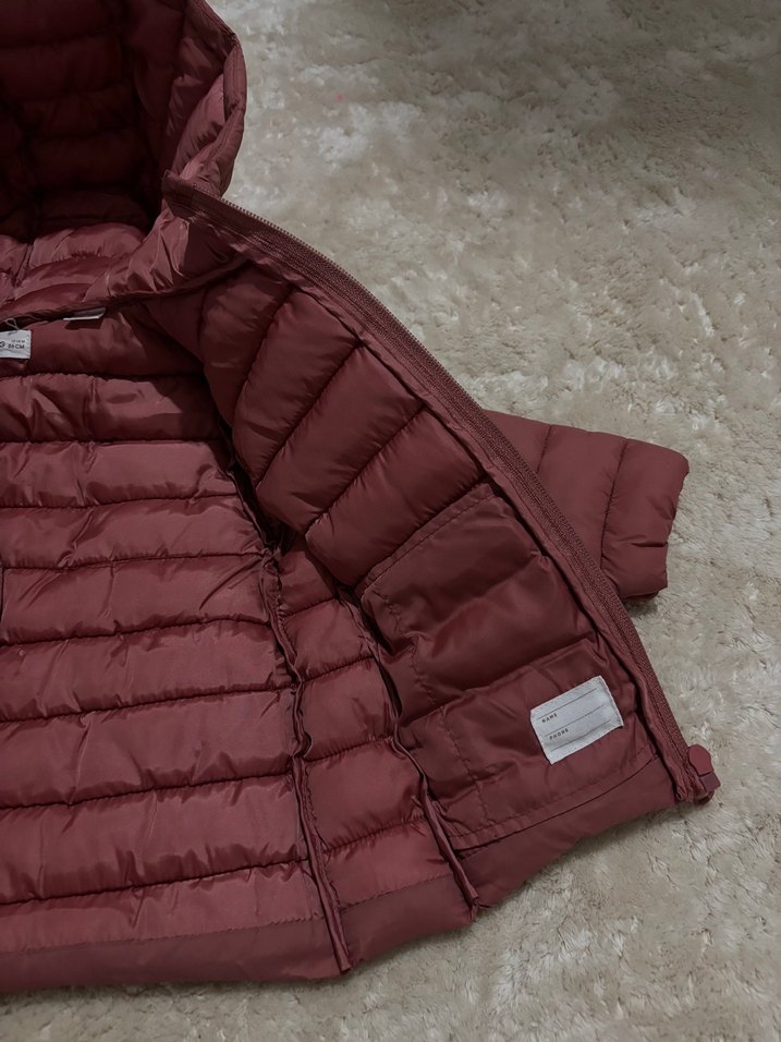 Bordo renkli, kürklü detaylı, notched lapel yaka ve dar kesime sahip kız çocuk montu, yumuşak sentetik kumaştan üretilmiştir.