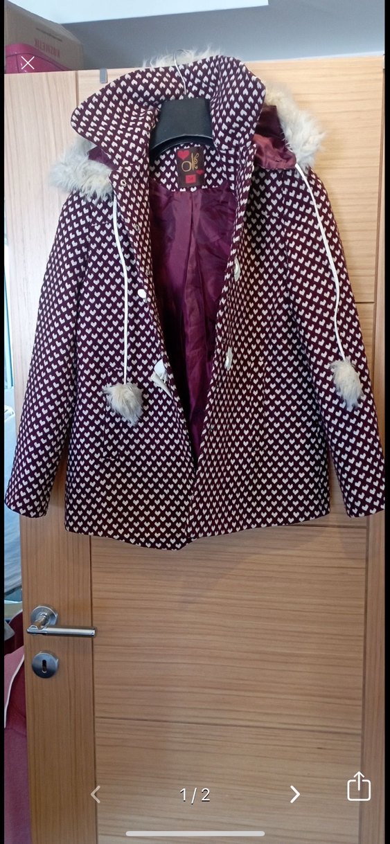 Bordo renkli, normal boy midi hamile kabanı, uzun kollu ve yakasında kesme yaka bulunur. Sentetik kumaş ve kürk detaylı kapüşonlu, bağcık uçlarında kürk süslemeleri vardır. Rahat kesimiyle günlük kullanıma uygundur.