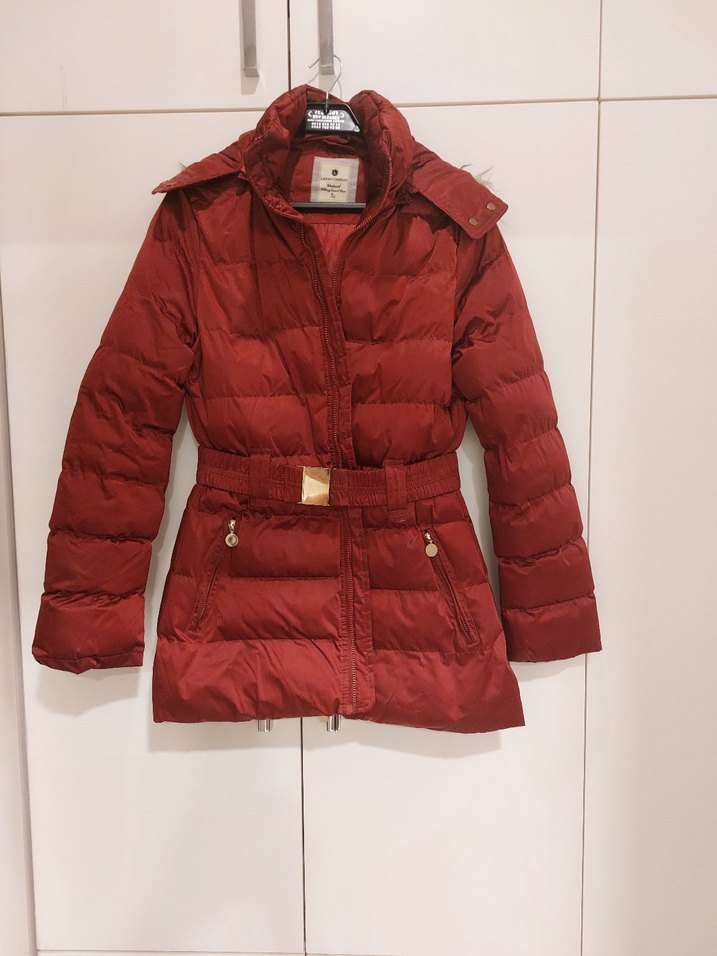 Bordo parlak renkte, kuşaklı ve strappy kollu, midi uzunlukta kadın kışlık mont. Notch yaka ve sentetik kumaştan, günlük kullanıma uygun rahat stil. ❄️
