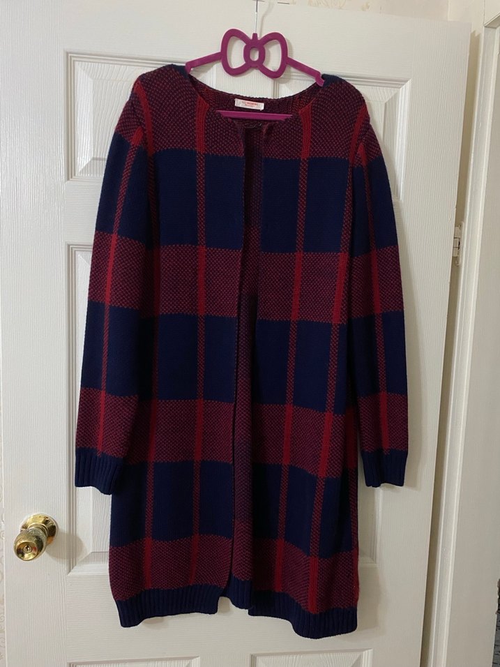 Bordo ve lacivert renklerde, triko örme hırka. Bol kesim, uzun kollu, notched lapel yaka ve midi boydadır. Rahat ve günlük kullanıma uygundur.