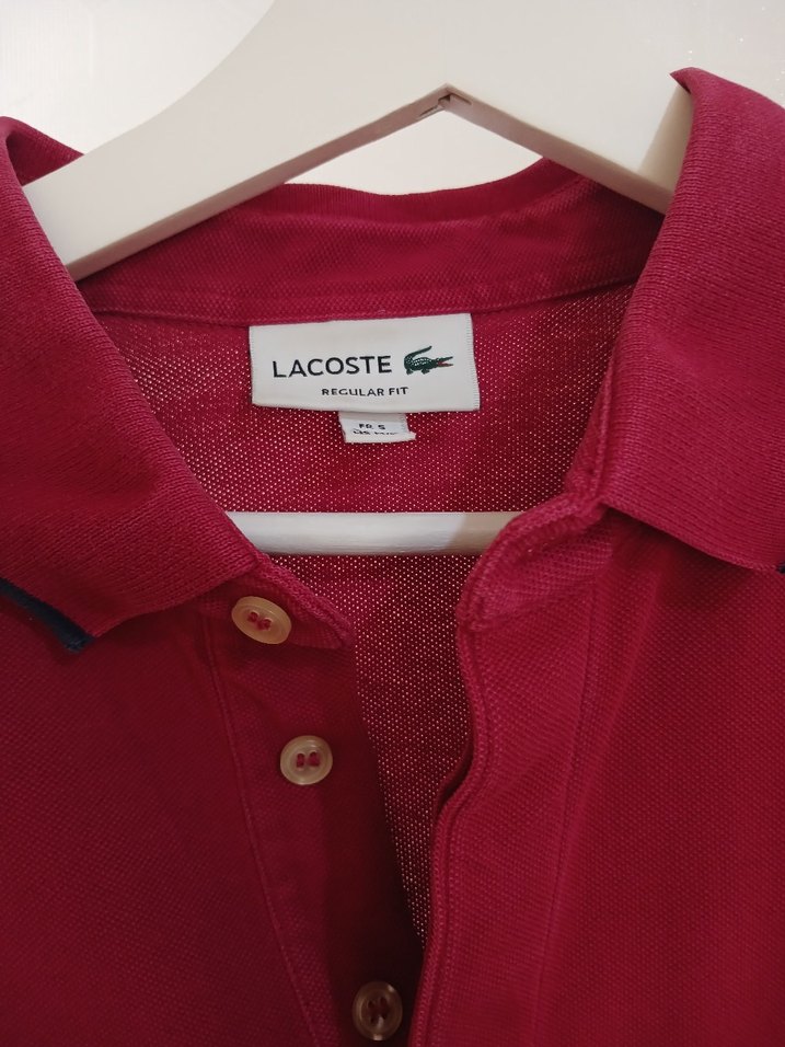 Bordo renkli Lacoste polo tişört, düğmeli ve yakalıdır. Sentetik kumaştan, bol kesim ve uzun kolludur. Renkli baskılı deseniyle günlük ve sokak stiline uygundur.