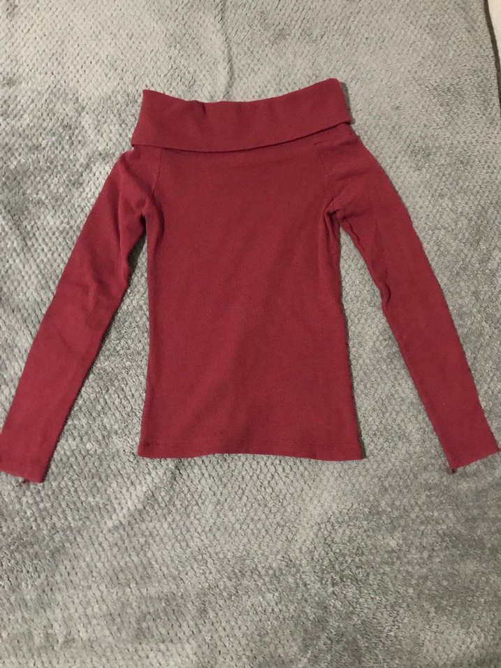 Bordo renk, uzun kollu ve kayık yaka bluz.