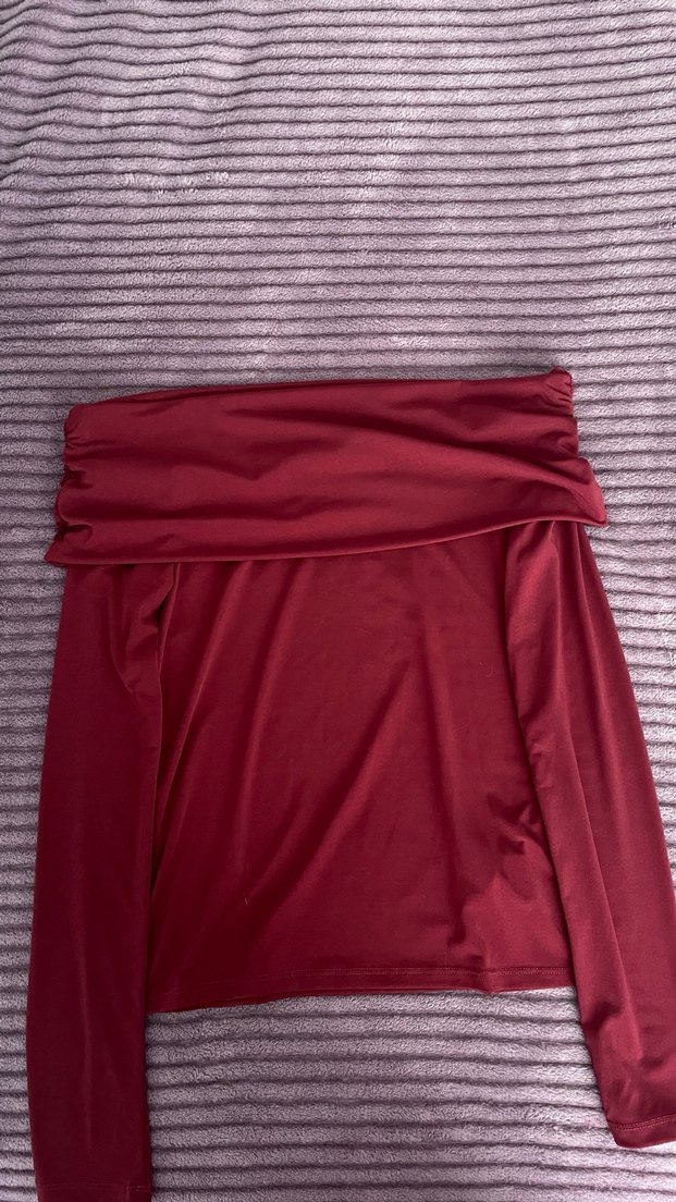 Bordo renkli, drapeli ve tek renk kadın bluz. Uzun kollu, tek vücuda oturan kesimiyle günlük kullanıma uygundur. Modern ve rahat athleisure tarzda midi boyda.