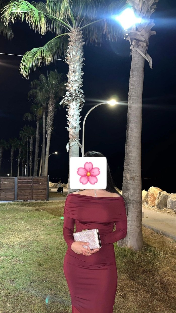 Bordo Madonna yaka tül elbise