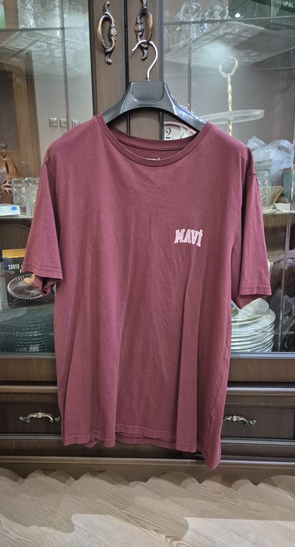 Bordo renkli, pamuk kumaştan, kısa kollu ve yuvarlak yakalı bu tişört, rahat bir loose fit kesime sahiptir. Önünde MAVİ baskısı bulunur.